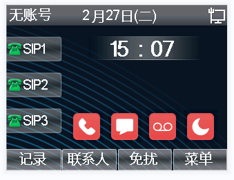 下半部分区域是功能菜单按键,它也是功能菜单按键的第一层,用户可以通过他们操作话机。