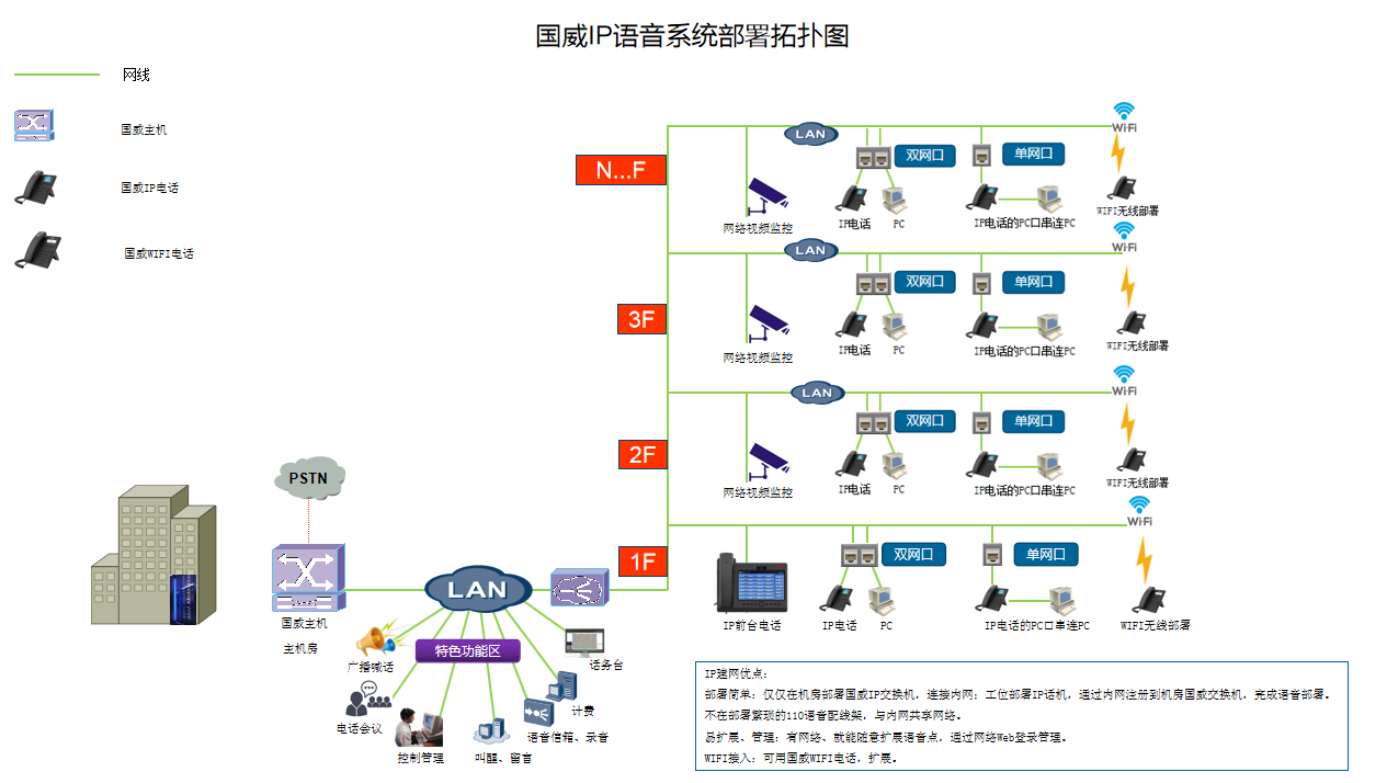 国威HB1981纯IP解决方案拓扑图如下: